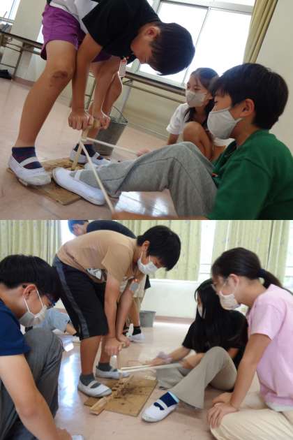 弥生文化博物館の方の指導のもと、火起こし体験などもできました。