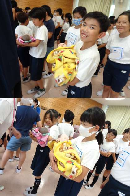 後半は、実際に赤ちゃんの人形を抱っこしたり、妊婦さんと同じ状況を体験したりして考えました。
