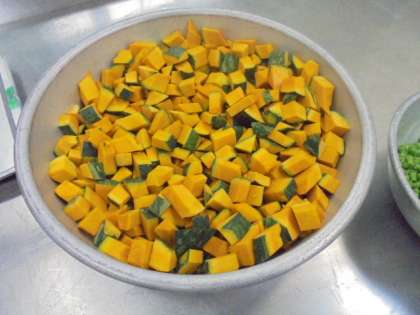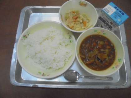 今日のカレーにも夏野菜の「かぼちゃ・いんげん・なす」