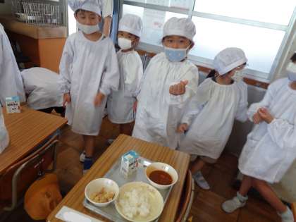 先週から給食が始まっています。