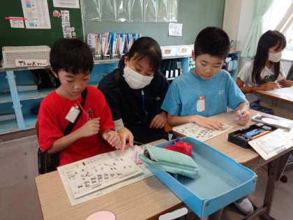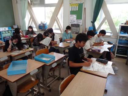 保健委員会では、手洗い場のせっけんの点検を済ませた後、安全に関するワークシートに取り組み、そのあと標語の作成に取り組んでいます。