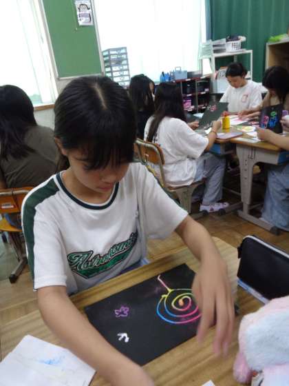 球技クラブは、外での活動を控え、中で活動しています。 早速、作品を作っているクラブもあります。アートです!