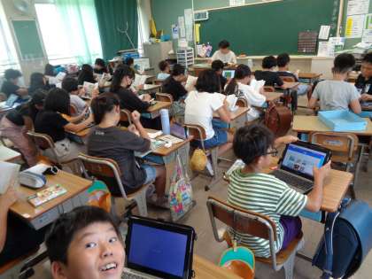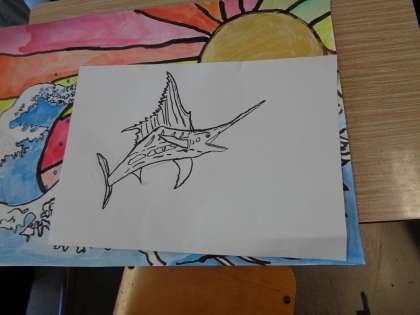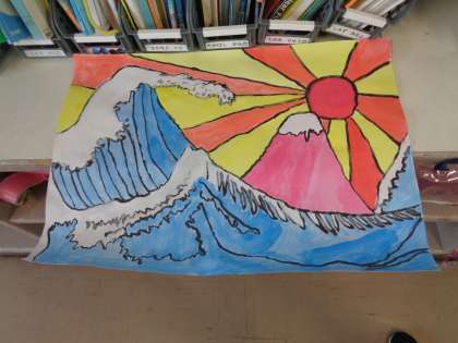 1組は、図工の時間です。大漁旗完成に近づいてきています。