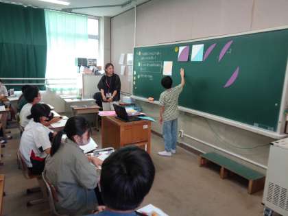 算数の授業では、円の面積の応用問題に取り組んでいます。