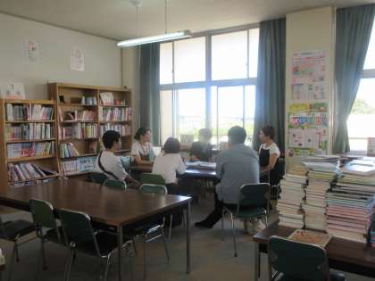朝の読み聞かせの後、図書館の様々な仕事