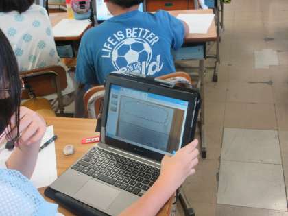 先生の作ったPOPをそれぞれタブレットで見ながら