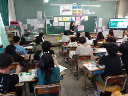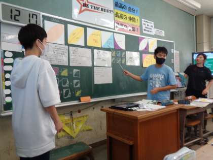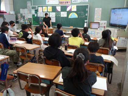 子どもが前に出て、自分の考えを発表しています。前に出て説明するのは、なかなか難しいものですが、さすが福泉中央小学校の最高学年です!