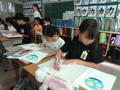 国語の授業で、教科書の名前にもなっている「あおぞら」の詩の視写に取り組んでいます。