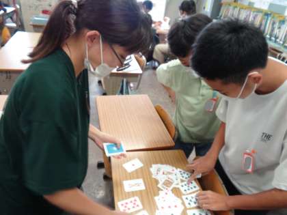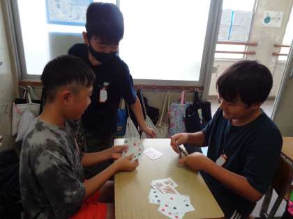 トランプやボードゲームなど、教室で、静かに、楽しく遊べています。
