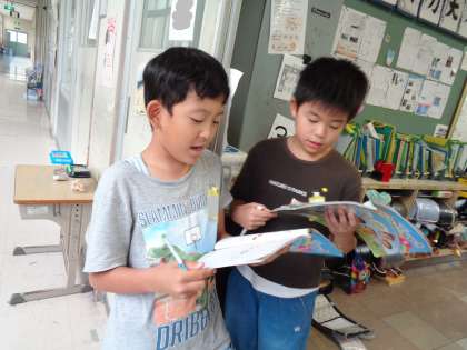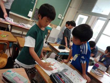 教室中、歩き回って、たくさんの相手と何度も聞きあっています。