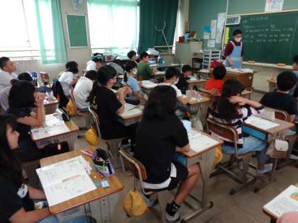 お味噌汁の作り方について学習しています。思った以上にたくさんの材料や工程があることにびっくりしている様子です。