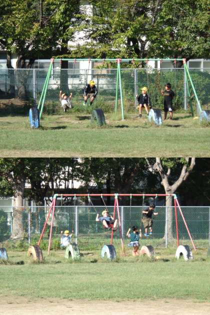秋晴れの中、元気に遊んでいます。