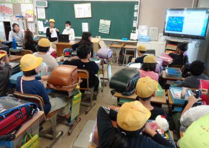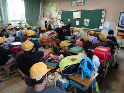 帰りの会では、スピーチをしていました。今日は、朝礼があったので、特別に帰りの会でスピーチしていました。PCの持ち帰りをした後のスピーチでは、資料なども準備してスピーチしているようです。