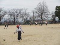 1年生は体育の授業です。ボールを使った運動をしています。皆で運動場いっぱいに使っ...