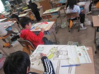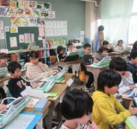 2年生は生活科の授業です。先日行った町たんけんのまとめをしています。それぞれ地区...