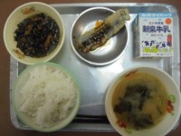 10月20日(月)今日の献立は,・ごはん・牛乳・みそ汁・さんまのかば焼き風・ひじ...