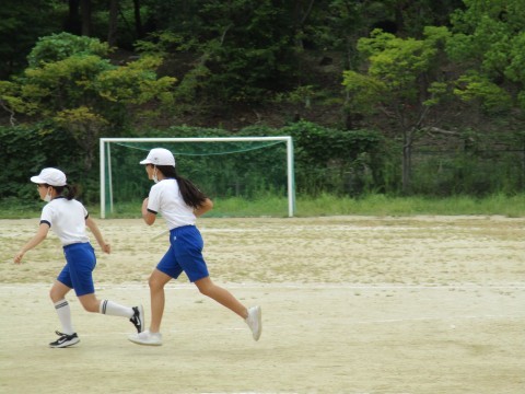 出場種目に分かれて、担任の先生や教育実習の先生にアドバイスを受けながら、競技の練習に励んでいます。