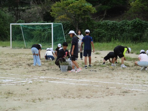 4年生~6年生の有志児童がたくさん参加し、運動場に生えた草を次々ときれいにしてくれました。
