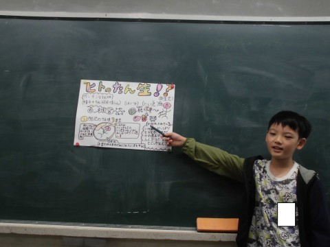 <2枚目>理科の学習です。生命の誕生についてまとめたことを発表しています。上手にまとめていて感心しました!