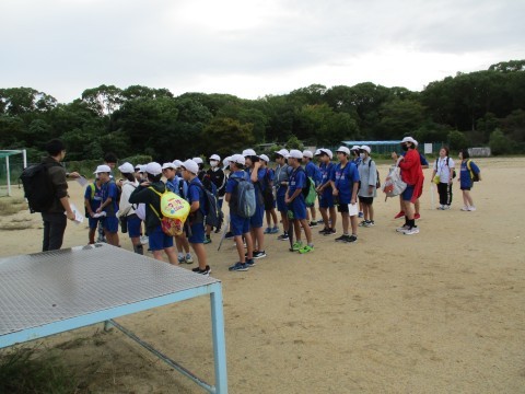 朝から曇天でしたが、時間通りに集合し、金岡陸上競技場へ出発しました。