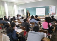 <1枚目>理科の学習です。流れる水の働きについて、実験キットを作成するために先生の話を聞いています。みんな真剣に聞いていますね。