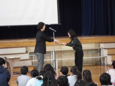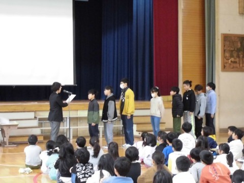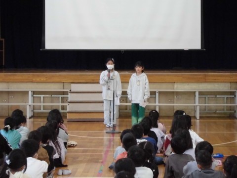 体育委員会からは「かけあしチャレンジ」の案内、児童会からは明日からの募金のお知らせと「桃小クリーンアップ大作戦」の案内がありました。