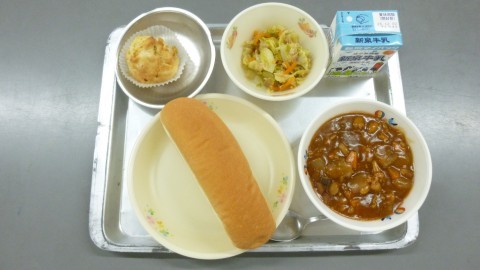 コーンブレッドは、堺市と姉妹都市であるアメリカのバークレー市の家庭料理です。とうもろこしの粉を使ってつくるパンのようなもので、給食ではコーンクリームで作っています。