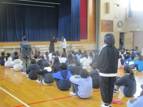今朝は全学年そろって全校集会をおこなうことができました。