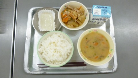 今日の給食では、米粉・砂糖・水で作った生地を、オーブンで蒸し焼きにしました。
