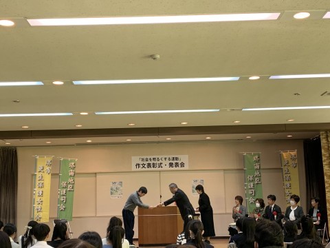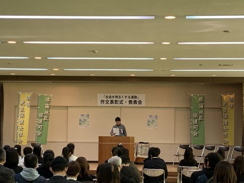 12月13日(土) 社会を明るくする運動 作文発表会 公開日 2025/12/15 更新日 2025/12/15 校長室より 南図書館で「社会を明るくする運動」の表彰式および作文発表会が行われました。本校の6年生児童も表彰を受け、作文を堂々と読み上げていました。自分の体験をもとに、自分の言葉で素直な思いを綴った素晴らしい作文でした。