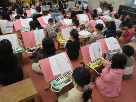 すでに楽譜を覚えている子どもたちも多く、みんなで合わせるととても迫力がありました。