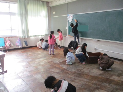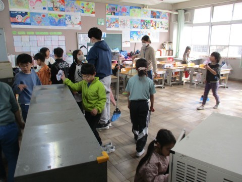 頑張ってそうじしたよ、と真っ黒のぞうきんを見せてくれる子どもたちが大勢いました。