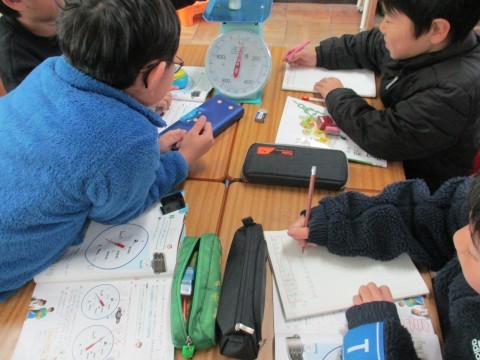 算数で重さの単位について学習しています。