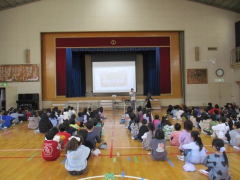 朝の集会で、福泉中央小学校の栄養士の先生が「行事食」について、教えてくれました。
