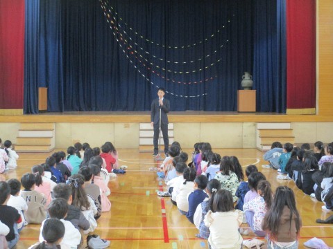 校長先生からは6年生の卒業式が素晴らしかったこと、この一年間みんなが自分の役割をしっかり務めたこと、一人ひとりの力を合わせると何倍もの力が発揮されることが話されました。