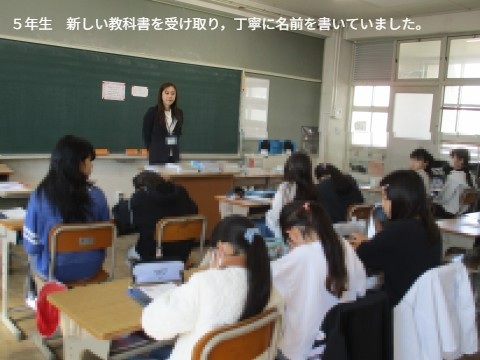 担任の先生の話を聞いたり,新しい教科書を配ってもらったりしていました。