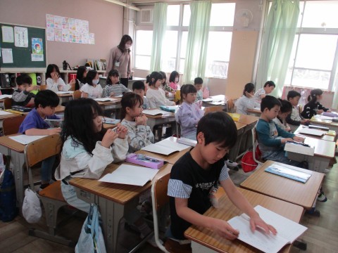 「ふきのとう」の学習です。この時間は1年生の復習として,「」(かぎ)の書き方などを振り返りながら,物語を読み進めていました。