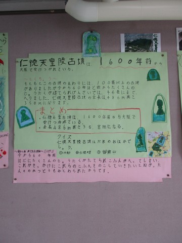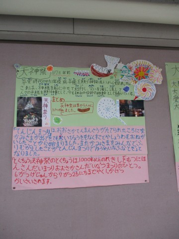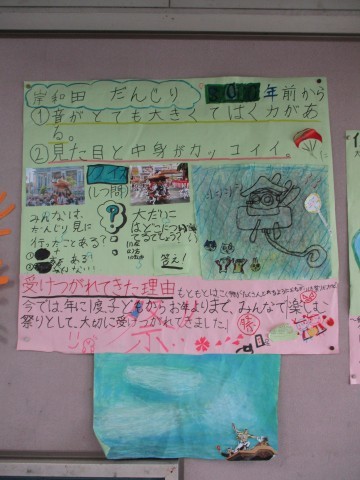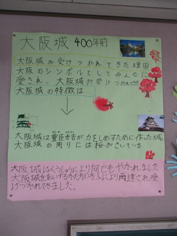 先日の授業参観では,「大阪府に昔からうけつがれてきたもの」をテーマに,グループ発表を行いました。