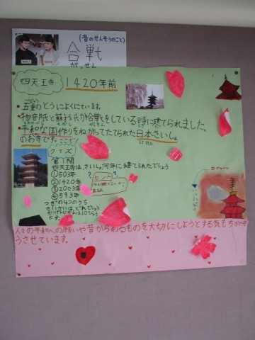 短い準備期間でしたが,人々の思いや願いに目を向けながら調べ学習を行い,伝える工夫をして掲示物を作成しました!