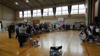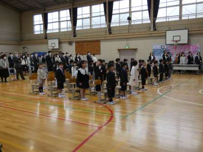 本日は、新1年生の入学式をおこないました。雨でしたが、1年生は元気に学校へ来てくれました。月曜日からまた新しい毎日が始まります。お友だちや先生たちと一緒に、学校で思い出をたくさんつくってほしいです。