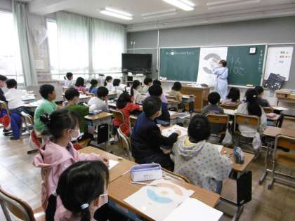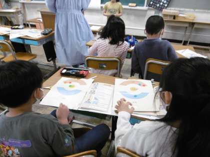 今日から算数が始まりました。はじめは少人数ではなく、みんなで取り組みます。かけ算の復習をした後に、おはじきを使ってするゲームの練習をしました。明日の本番が楽しみですね。