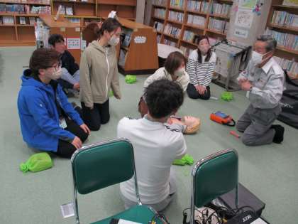 教職員向けの救急救命講習を実施しました。堺市消防局の方に来ていただき、子どもたちや市民の方の人命救助に力を尽くせるよう、胸骨圧迫やAEDの使用について訓練を行いました。