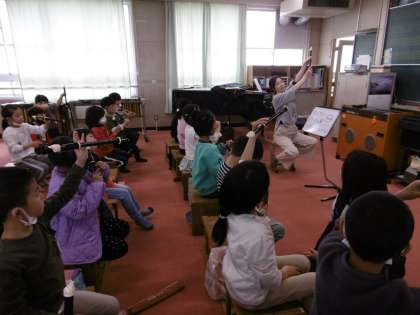 今日は音楽で初めてリコーダーをふきました。先生に吹き方を教えてもらって、トゥーっと優しく息をいれます。みんなで合奏できる日が楽しみですね。