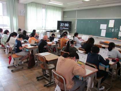 5・6年生がすくすくウォッチを受けました。5年生は国語・算数・理科とわくわく問題に、とても真剣に取り組んでいました。