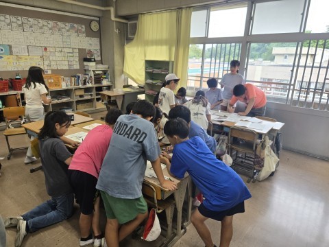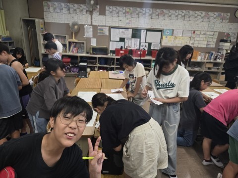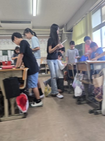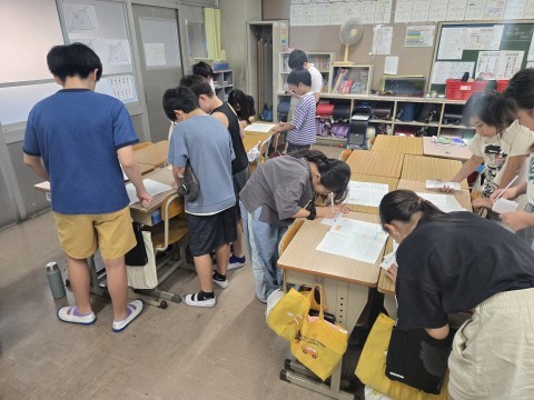 自学ノートを見合っています。