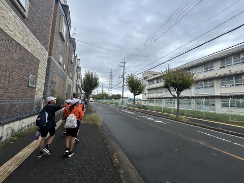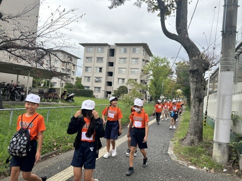 雨が少し降っていましたが、連合運動会が行われる金岡陸上競技場まで行きました!