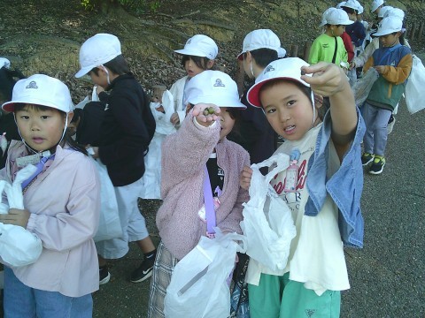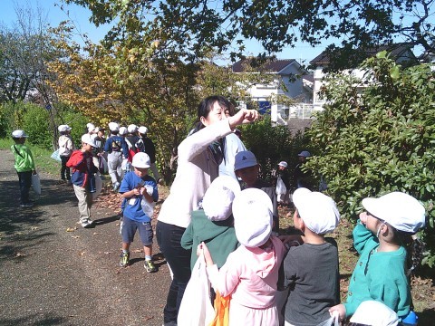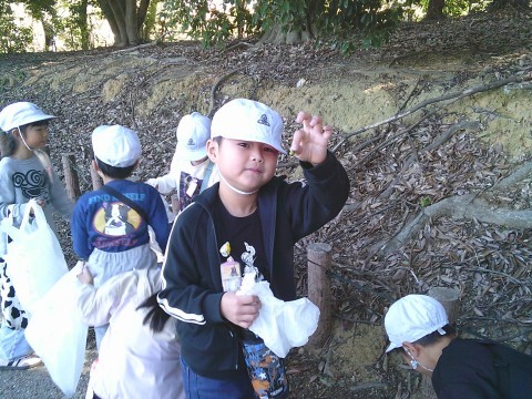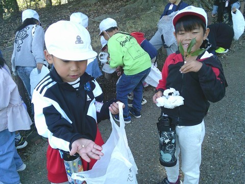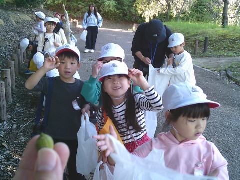 アサガオのリースに飾るどんぐりを拾いに行きました。