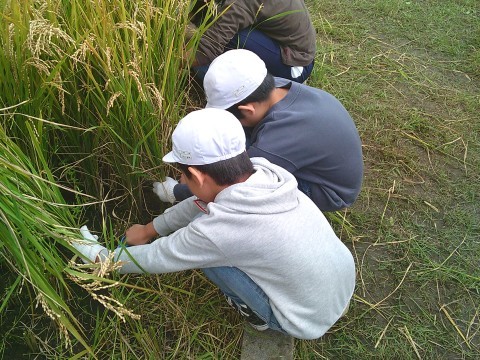 6月に植えた稲がしっかり育って、ようやく稲刈りをすることができました。