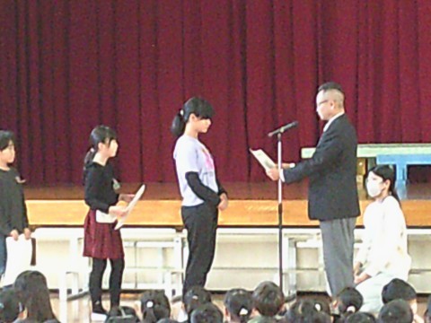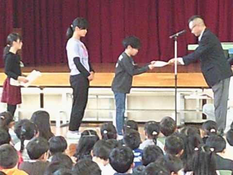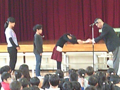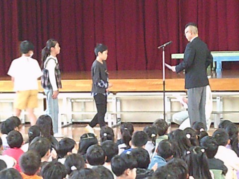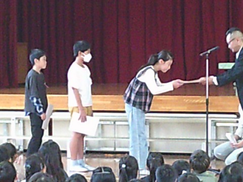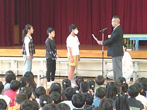 10月27日(月)児童朝会「夏休みの作品表彰」