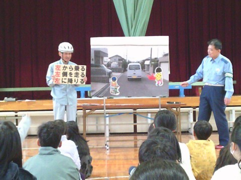 どんな歩き方をしたらいいのか、自転車に乗るときは点検をしてから、ルールを守って運転することなどを学びました。